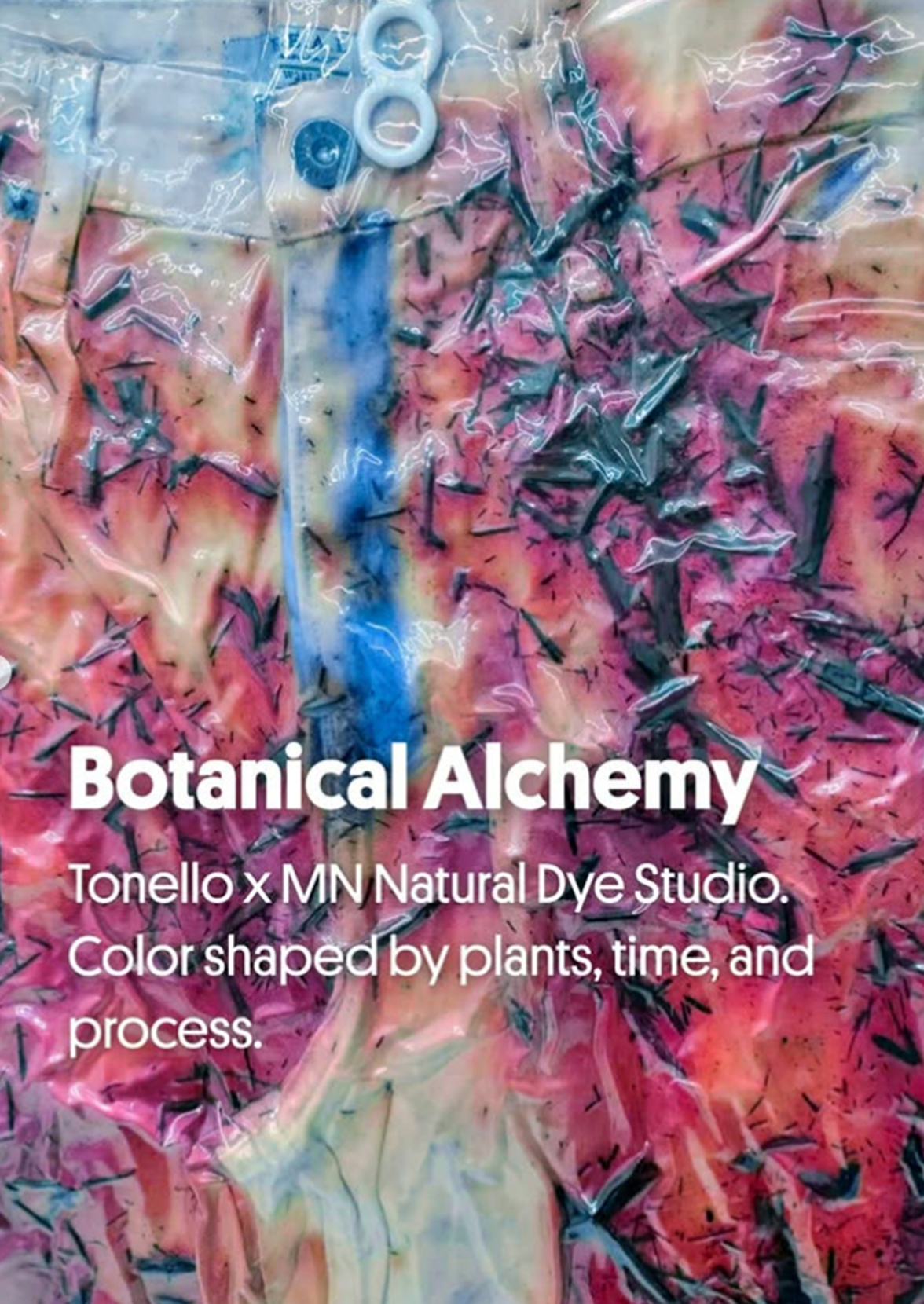 Al mismo tiempo, al otro lado del Atlántico, Tonello participará en Kingpins New York con Botanical Alchemy, un estudio del color que combina investigación y poesía, devolviendo a las prendas su diálogo con la naturaleza.