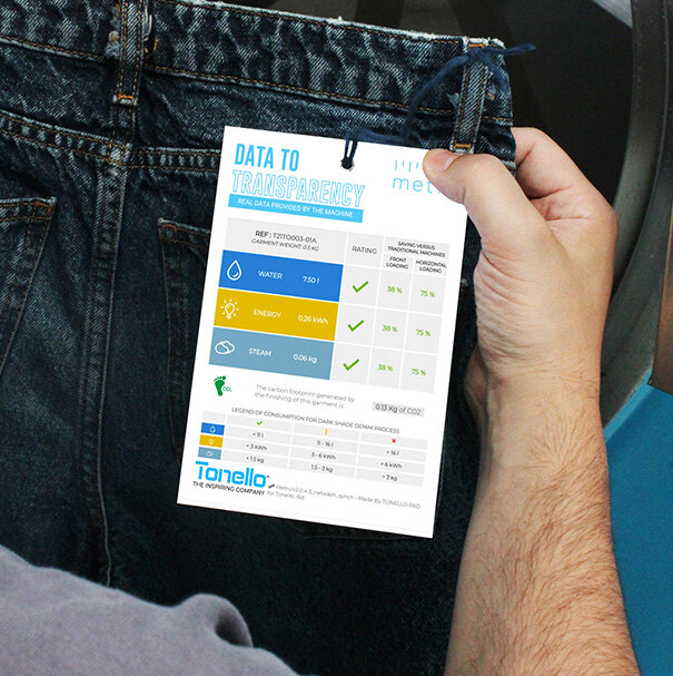 Tutte le fasi sono gestite e monitorate da Metro, la piattaforma digitale Tonello che rileva i consumi reali e verificati di ogni capo, incluse le emissioni generate dal processo. In questo modo i brand possono contare su dati trasparenti e affidabili.