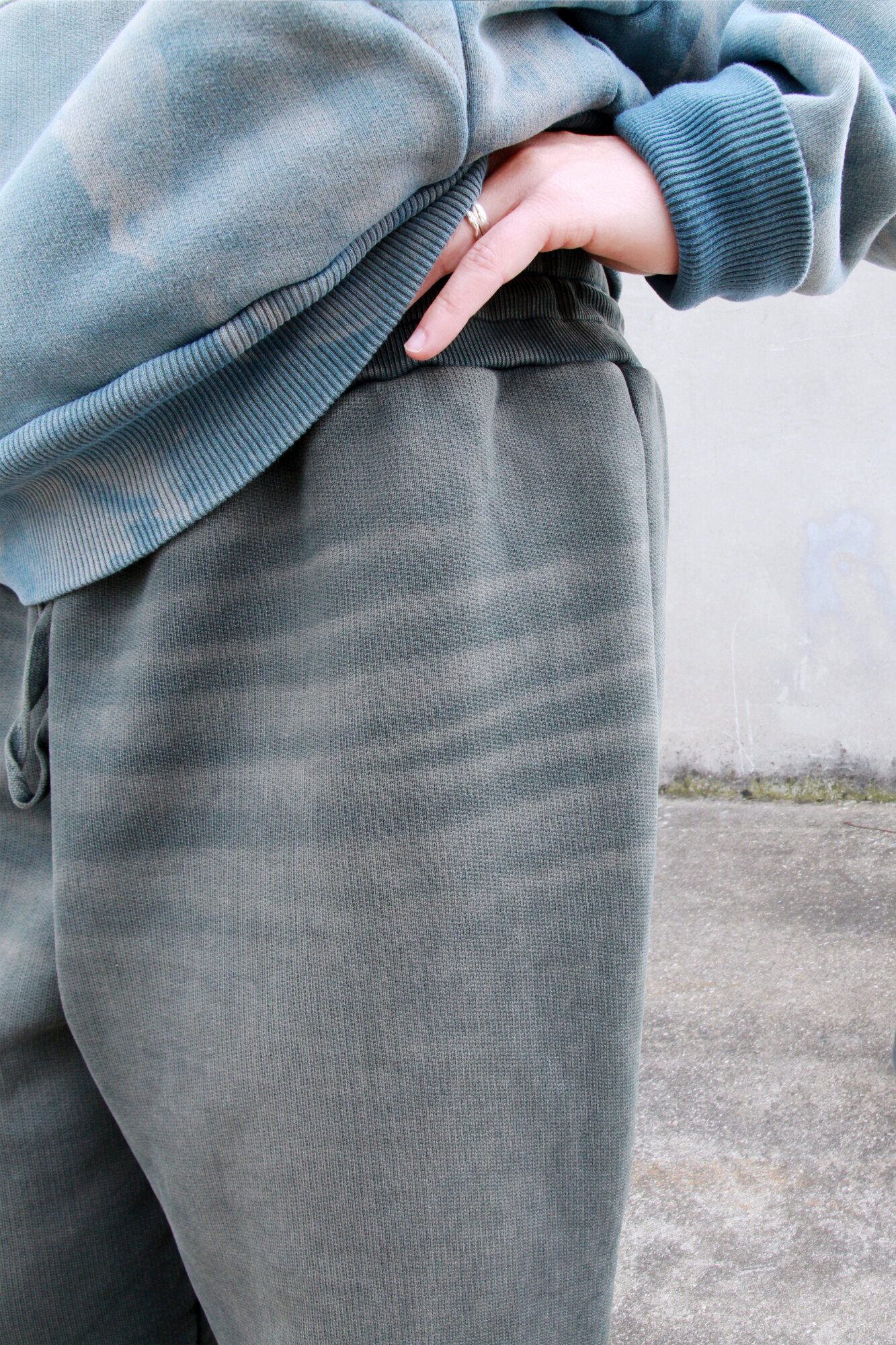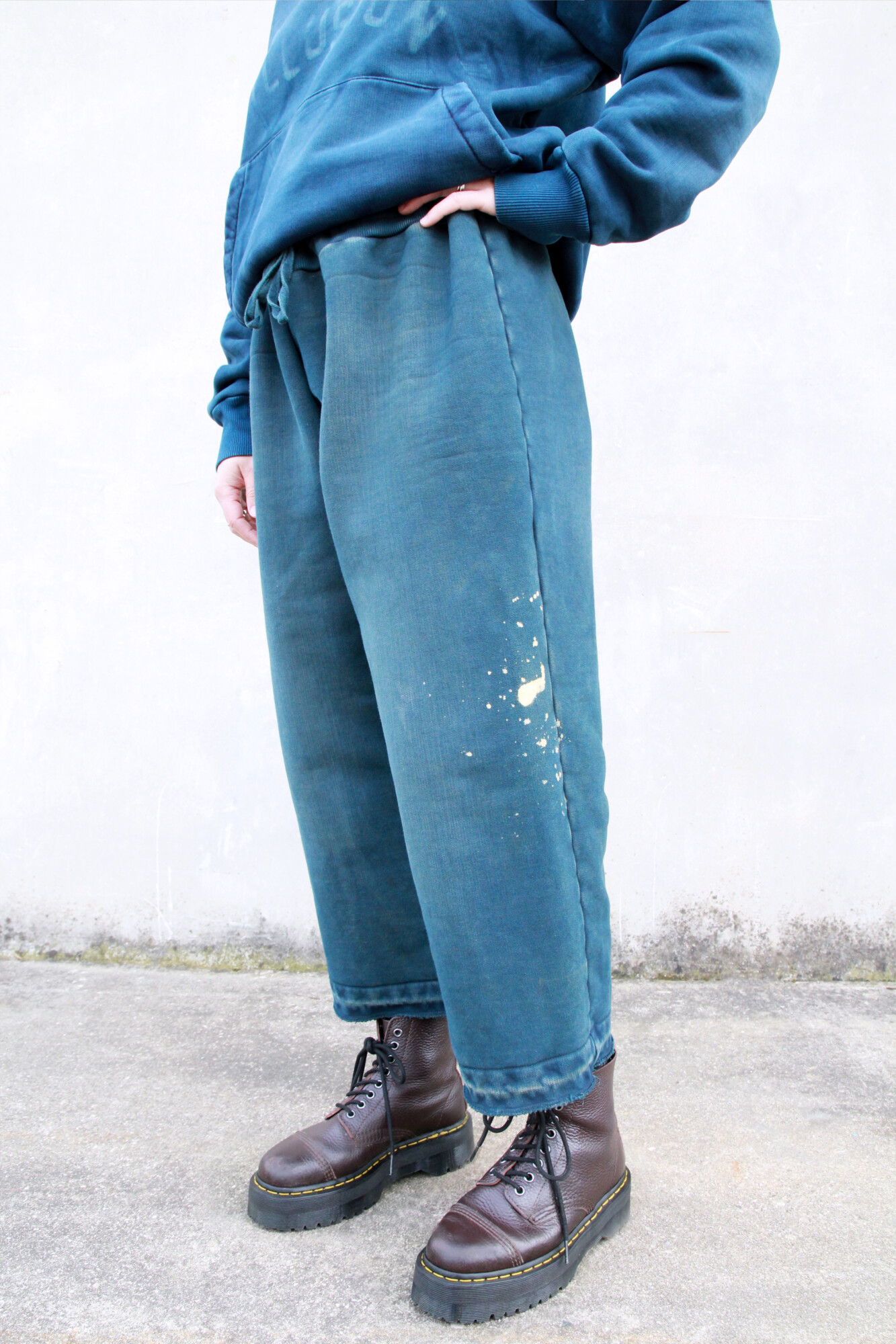 Con DyeMate, i capi vengono tinti in indaco attraverso un processo controllato a bassa temperatura, creando una base uniforme e reattiva ai trattamenti successivi. Accanto a questi, la collezione include capi pronti per tinta sviluppati con Sulfur Essence, dove coloranti allo zolfo e indaco si combinano per ricreare la profondità visiva tipica del denim scaricato e sovratinto.